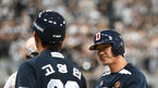 [OSEN=고척, 김성락 기자] 23일 오후 서울 구로구 고척스카이돔에서 ‘2023 신한은행 SOL KBO리그’ 키움 히어로즈와 두산 베어스의 경기가 열렸다.7회초 1사 3루 두산 김재호가 앞서가는 1타점 적시타를 날린 뒤 고영민 코치와 하이파