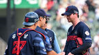 [OSEN=잠실, 지형준 기자] 24일 오후 서울 잠실야구장에서 ‘2023 신한은행 SOL KBO리그’ LG 트윈스와 롯데 자이언츠의 경기가 열렸다.3회말 1사 1루에서 롯데 배영수 코치가 마운드에 올라 반즈를 교체하고 있다. 2023.06.24 /jpnews@osen.co