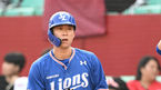 [OSEN=인천, 김성락 기자] 24일 오후 인천 SSG랜더스필드에서 ‘2023 신한은행 SOL KBO리그’ SSG 랜더스와 삼성 라이온즈의 경기가 열렸다.1회말 2사 2, 3루 삼성 안주형이 볼넷으로 출루한 뒤 기뻐하고 있다. 2023.06.24 /ksl0919@osen.co.kr