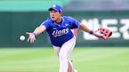 [OSEN=인천, 최규한 기자] 25일 오후 인천 SSG랜더스필드에서 ‘2023 신한은행 SOL KBO리그’ SSG 랜더스와 삼성 라이온즈의 경기가 열렸다.1회말 1사 주자없는 상황 SSG 최지훈의 내야 땅볼 때 삼성 1루수 조민성이 타구를 잡아 1루로 토