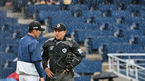 [OSEN=창원, 이석우 기자] 25일 창원 NC파크에서 2023 신한은행 SOL KBO리그 NC 다이노스와 한화 이글스의 경기가 열렸다. 많은 비가 내리자 NC 다이노스 강인권 감독이 주심과 얘기를 하고 있다. 2023.06.25 / foto0307@osen.co.kr