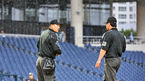 [OSEN=창원, 이석우 기자] 25일 창원 NC파크에서 2023 신한은행 SOL KBO리그 NC 다이노스와 한화 이글스의 경기가 열렸다. 많은 비가 내리자 심판진들이 경기 중단을 상의하고 있다. 2023.06.25 / foto0307@osen.co.kr