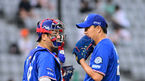 [OSEN=인천, 최규한 기자] 25일 오후 인천 SSG랜더스필드에서 ‘2023 신한은행 SOL KBO리그’ SSG 랜더스와 삼성 라이온즈의 경기가 열렸다.7회말 SSG 공격을 실점없이 막아낸 삼성 선발 뷰캐넌과 포수 강민호가 더그아웃으로 향하며 인