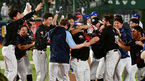 [OSEN=부산, 이석우 기자] 27일 부산 사직구장에서 2023 신한은행 SOL KBO리그 롯데 자이언츠와 삼성 라이온즈의 경기가 열렸다. 롯데 자이언츠 유강남이 9회말 2사 1루 끝내기 투런 홈런을 치고 동료들의 축하를 받고 있다. 2023.06.27 /