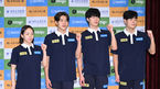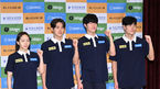 [OSEN=진천, 이대선 기자] 27일 오후 충북 진천선수촌에서 AQUA 세계수영선수권대회를 앞두고 있는 수영 국가대표팀 미디어데이가 열렸다.경영 김서영, 김우민, 황선우, 이호준이 포토타임을 가지고 있다. 2023.06.27 /sunday@osen.co.kr