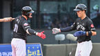 [OSEN=부산, 이석우 기자] 28일 부산 사직구장에서 2023 신한은행 SOL KBO리그 롯데 자이언츠와 삼성 라이온즈의 경기가 열렸다. 롯데 자이언츠 고승민이 1회말 무사 1,3루 전준우의 희생타때 득점을 올리고 렉스와 하이파이브를 하고