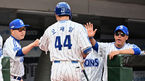 [OSEN=부산, 이석우 기자] 28일 부산 사직구장에서 2023 신한은행 SOL KBO리그 롯데 자이언츠와 삼성 라이온즈의 경기가 열렸다. 삼성 라이온즈 오재일이 1회초 1사 2, 3루 1타점 희생타를 치고 더그아웃에서 박진만 감독과 하이파이브