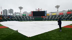 [OSEN=부산, 손찬익 기자] 잠실 두산-NC전과 대전 한화-KT전 그리고 문학 SSG-LG전이 취소된 가운데 사직 롯데-삼성전도 장마 영향으로 미뤄졌다.정오부터 빗방울이 조금씩 떨어지기 시작했다. 구장 관리 요원들은 대형 방수포를 깔