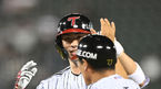 [OSEN=잠실, 김성락 기자] 30일 오후 서울 잠실야구장에서 ‘2023 신한은행 SOL KBO리그’ LG 트윈스와 KIA 타이거즈의 경기가 열렸다.6회말 2사 만루 LG 홍창기가 동점 2타점 적시타를 날린 뒤 이종범 코치와 기쁨을 나누고 있다. 2023.06.3
