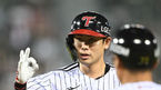 [OSEN=잠실, 김성락 기자] 30일 오후 서울 잠실야구장에서 ‘2023 신한은행 SOL KBO리그’ LG 트윈스와 KIA 타이거즈의 경기가 열렸다.5회말 1사 2루 홍창기가 추격의 1타점 적시타를 날린 뒤 세리머니를 하고 있다. 2023.06.30 /ksl0919@osen.co