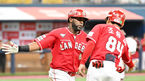[OSEN=고척, 민경훈 기자] 30일 오후 서울 구로구 고척스카이돔에서 ‘2023 신한은행 SOL KBO리그’ 키움 히어로즈와 SSG 랜더스의 경기가 열렸다.6회초 2사 주자 1루 SSG 최주환이 우월 선취 투런 홈런을 날린 후 덕아웃에서 김원형 감