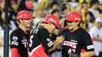 [OSEN=지형준 기자] 1일 오후 서울 잠실야구장에서 ‘2023 신한은행 SOL KBO리그’ LG 트윈스와 KIA 타이거즈의 경기가 열렸다.7회초 1사 2,3루에서 KIA 김도영, 나성범이 LG 투수 교체에 이야기를 나누며 즐거워하고 있다. 2023.07.01 /jpnews@o