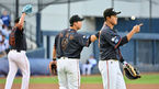 [OSEN=대구, 이석우 기자] 1일 대구 삼성라이온즈파크에서 2023 신한은행 SOL KBO리그 삼성 라이온즈와 한화 이글스의 경기가 열렸다. 한화 이글스 노시환과 채은성이 1회말 무사 1루 삼성 라이온즈 안주형의 번트를 잡아 병살 처리