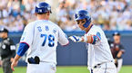 [OSEN=대구, 이석우 기자] 1일 대구 삼성라이온즈파크에서 2023 신한은행 SOL KBO리그 삼성 라이온즈와 한화 이글스의 경기가 열렸다. 삼성 라이온즈 강민호가 1회말 2사 2루 1타점 중전 적시타를 치고 하이파이브를 하고 있다. 2023.07.