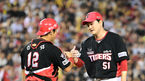[OSEN=잠실, 지형준 기자] 1일 오후 서울 잠실야구장에서 ‘2023 신한은행 SOL KBO리그’ LG 트윈스와 KIA 타이거즈의 경기가 열렸다.8회말 2사에서 KIA 전상현이 교체되며 신범수와 하이파이브를 하고 있다. 2023.07.01 /jpnews@osen.co.kr