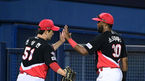 [OSEN=지형준 기자] 1일 오후 서울 잠실야구장에서 ‘2023 신한은행 SOL KBO리그’ LG 트윈스와 KIA 타이거즈의 경기가 열렸다.7회말 수비를 마치고 KIA 전상현이 호수비를 선보인 소크라테스와 하이파이브를 하고 있다. 2023.07.01 /jpnews@