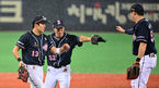 [OSEN=포항, 이석우 기자] 4일 포항야구장에서 2023 신한은행 SOL KBO리그 삼성 라이온즈와 두산 베어스의 경기가 열렸다. 두산 베어스 허경민, 김재호가 연장 10회까지 가는 접전 끝에 삼성 라이온즈에 5-3으로 승리한 후 양석환과 하