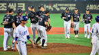 [OSEN=포항, 이석우 기자] 4일 포항야구장에서 2023 신한은행 SOL KBO리그 삼성 라이온즈와 두산 베어스의 경기가 열렸다. 두산 베어스 선수들이 연장 10회까지 가는 접전 끝에 삼성 라이온즈에 5-3으로 승리한 후 하이파이브를 하고