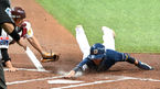 [OSEN=고척, 이대선 기자] 4일 오후 서울 고척스카이돔에서 ‘2023 신한은행 SOL KBO리그’ 키움 히어로즈와 NC 다이노스의 경기가 열렸다.1회초 1사 1,3루에서 NC 권희동의 희생플라이 때 3루주자 서호철이 홈으로 쇄도해 세이프 되고