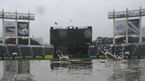 [OSEN=잠실, 조은정 기자] 잠실구장에 장맛비가 내리면서 그라운드에 물웅덩이가 생기고 있다. 4일 서울 잠실구장에서 LG와 KT가 시즌 6차전 맞대결이 예정돼 있다. 그런데 이날 오후 장마전선의 영향으로 비가 쏟아지고 있다.