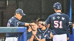 [OSEN=포항, 이석우 기자] 4일 포항야구장에서 2023 신한은행 SOL KBO리그 삼성 라이온즈와 두산 베어스의 경기가 열렸다. 두산 베어스 이승엽 감독이 7회초 김재호의 1타점 적시타때 득점을 올린 조수행에게 박수를 보내고 있다. 2023