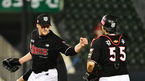 [OSEN=잠실, 조은정 기자] 5일 오후 서울 잠실야구장에서 ‘2023 신한은행 SOL KBO리그’ LG 트윈스와 KT 위즈의 경기가 열렸다.6회초 1사 KT 선발 벤자민이 마운드에서 내려가던 중 포수 강현우와 주먹을 치고 있다. 2023.07.05 /cej@osen.co.kr