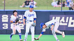 [OSEN=포항, 이석우 기자] 5일 포항야구장에서 2023 신한은행 SOL KBO리그 삼성 라이온즈와 두산 베어스의 경기가 열렸다. 삼성 라이온즈 김동진이 3회말 1타점 적시타를 치고 하이파이브를 하고 있다. 2023.07.05 / foto0307@osen.co.kr