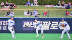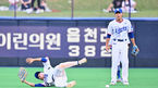 [OSEN=포항, 이석우 기자] 5일 포항야구장에서 2023 신한은행 SOL KBO리그 삼성 라이온즈와 두산 베어스의 경기가 열렸다. 삼성 라이온즈 김현준이 4회초 2사 1,2루 두산 베어스 강승호의 타구를 잡았다 놓치고 있다. 2023.07.05 / foto0307@os