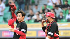 [OSEN=인천, 최규한 기자] 5일 오후 인천 SSG랜더스필드에서 ‘2023 신한은행 SOL KBO리그’ SSG 랜더스와 KIA 타이거즈가 열렸다.2회초 무사 만루 상황 KIA 선발 윤영철과 포수 한준수가 대화를 나누고 있다. 2023.07.05 / dreamer@osen.co.kr