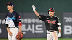 [OSEN=부산, 이석우 기자] 8일 부산 사직구장에서 2023 신한은행 SOL KBO리그 롯데 자이언츠와 LG 트윈스의 경기가 열렸다. LG 트윈스 신민재가 6회초 2사 2,3루 2타점 적시타를 치고 세리머니를 하고 있다. 2023.07.08 / foto0307@osen.co.kr
