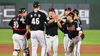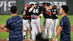 [OSEN=부산, 이석우 기자] 8일 부산 사직구장에서 2023 신한은행 SOL KBO리그 롯데 자이언츠와 LG 트윈스의 경기가 열렸다. LG 트윈스 선수들이 롯데 자이언츠에 12-3으로 완승하고 기쁨을 나누고 있다. 2023.07.08 / foto0307@osen.co.kr