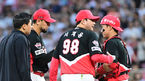 [OSEN=수원, 최규한 기자] 9일 오후 경기도 수원 KT위즈파크에서 ‘2023 신한은행 SOL KBO리그’ KT 위즈와 KIA 타이거즈의 경기가 열렸다.7회말 1사 1루 상황 KIA 새 외국인투수 마리오 산체스가 마운드를 내려가며 서재응 코치와 인사