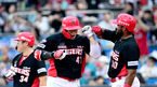 [OSEN=수원, 최규한 기자] 9일 오후 경기도 수원 KT위즈파크에서 ‘2023 신한은행 SOL KBO리그’ KT 위즈와 KIA 타이거즈의 경기가 열렸다.7회초 2사 1루 상황 KIA 나성범이 달아나는 중월 투런포를 날리고 홈을 밟은 뒤 소크라테스와 기