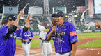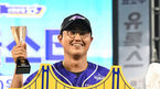 [OSEN=부산, 이석우 기자] 15일 부산 사직구장에서 2023 신한은행 SOL KBO 올스타전 드림과 나눔의 경기가 열렸다. MVP를 수상한 나눔 올스타 채은성이 트로피를 들고 포즈를 취하자 박상원과 문동주가 축하 물세례를 하고 있다. 2023.07