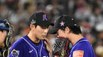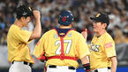 [OSEN=부산, 이대선 기자] 15일 오후 부산 사직야구장에서 2023 신한은행 SOL KBO 올스타전이 열렸다.9회초 2사에서 나눔 올스타 이정후가 투수 고우석을 교체하며 이야기를 나누고 있다. 2023.07.15 /sunday@osen.co.kr