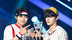 [OSEN=고양, 박준형 기자] 19일 오후 경기도 고양시 MBC드림센터에서 MBC M '쇼챔피언' 생방송이 진행됐다.쇼챔피언 1위를 차지한 제로베이스원 박건욱과 김지웅이 트로피를 들어보이고 있다. . 2023.07.19 / soul1014@osen.co.kr