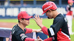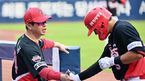 [OSEN=창원, 이석우 기자] 25일 창원 NC파크에서 2023 신한은행 SOL KBO리그 NC 다이노스와 KIA 타이거즈의 경기가 열렸다. KIA 타이거즈 김종국 감독이 1회초 무사 3루 희생타를 친 김도영과 하이파이브를 하고 있다. 2023.07.25 / foto0307@osen.