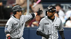 [OSEN=고척, 이대선 기자] 26일 오후 서울 고척스카이돔에서 ‘2023 신한은행 SOL KBO리그’ 키움 히어로즈와 한화 이글스의 경기가 열렸다.1회말 2사에서 키움 도슨이 우월 솔로 홈런을 치고 박재상 코치와 하이파이브를 하고 있다. 2