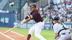 [OSEN=잠실, 조은정 기자] 3일 오후 서울 잠실야구장에서 ‘2023 신한은행 SOL KBO리그’ LG 트윈스와 키움 히어로즈의 경기가 열렸다.1회초 2사 2루 키움 송성문이 선취 1타점 적시타를 날리고 있다. 2023.08.03 /cej@osen.co.kr