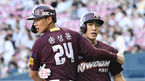 [OSEN=잠실, 조은정 기자] 3일 오후 서울 잠실야구장에서 ‘2023 신한은행 SOL KBO리그’ LG 트윈스와 키움 히어로즈의 경기가 열렸다.1회초 2사 1루 키움 이주형이 우월 투런 홈런을 날린 뒤 송성문의 축하를 받고 있다. 2023.08.03 /cej@os