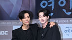 [OSEN=이대선 기자] 4일 오후 서울 마포구 MBC 골든마우스홀에서 MBC 새 금토드라마 ‘연인’(극본 황진영, 연출 김성용 천수진) 제작발표회가 열렸다.배우 남궁민과 김윤우가 포토타임을 가지고 있다. 2023.08.04 /sunday@osen.co.kr