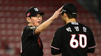 [OSEN=잠실, 조은정 기자] 4일 오후 서울 잠실야구장에서 ‘2023 신한은행 SOL KBO리그’ 두산 베어스와 KT 위즈의 경기가 경기가 열렸다.9회말 1사 1,2루 KT 이강철 감독이 마운드에 올라 박영현을 다독이고 있다. 2023.08.04 /cej@osen.co.kr