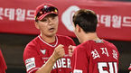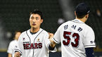 [OSEN=잠실, 조은정 기자] 4일 오후 서울 잠실야구장에서 ‘2023 신한은행 SOL KBO리그’ 두산 베어스와 KT 위즈의 경기가 경기가 열렸다.9회초 이닝을 마친 뒤 두산 김인태가 양석환과 주먹을 맞대고 있다. 2023.08.04 /cej@osen.co.kr