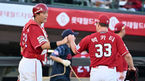 [OSEN=광주, 민경훈 기자] 6일 오후 광주-기아챔피언스필드에서 ‘2023 신한은행 SOL KBO리그’ KIA 타이거즈와 한화 이글스 경기가 열렸다.5회말을 마친 한화 선발 문동주가 미소지속 있다. 2023.08.06 / rumi@osen.co.kr