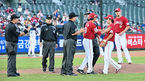 [OSEN=부산, 이석우 기자] 6일 부산 사직구장에서 2023 신한은행 SOL KBO리그 롯데 자이언츠와 SSG 랜더스의 경기가 열렸다. SSG 랜더스 김성현이 7회말 1사 3루 롯데 자이언츠 안치홍 타석때 볼 판정에 대해 항의하자 김원형 감독이 말