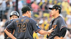 [OSEN=광주, 민경훈 기자] 6일 오후 광주-기아챔피언스필드에서 ‘2023 신한은행 SOL KBO리그’ KIA 타이거즈와 한화 이글스 경기가 열렸다.5회말 2사 주자 1,2루 KIA 박찬호 타석에서 한화 박승민 코치가 마운드에 올라 선발 문동주와