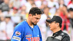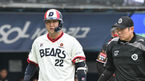 [OSEN=잠실, 조은정 기자] 6일 오후 서울 잠실야구장에서 ‘2023 신한은행 SOL KBO리그’ 두산 베어스와 KT 위즈의 경기가 경기가 열렸다.5회말 무사 1루 두산 장승현이 손 부상을 호소하며 교체되고 있다. 2023.08.06 /cej@osen.co.kr