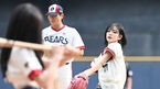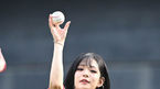 [OSEN=잠실, 조은정 기자] 6일 오후 서울 잠실야구장에서 ‘2023 신한은행 SOL KBO리그’ 두산 베어스와 KT 위즈의 경기가 경기가 열렸다.프로미스나인 박지원이 시타에 나서고 있다. 2023.08.06 /cej@osen.co.kr