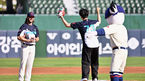 [OSEN=부산, 이석우 기자] 6일 부산 사직구장에서 2023 신한은행 SOL KBO리그 롯데 자이언츠와 SSG 랜더스의 경기가 열렸다. 트로트 가수 신인선이 시구를 마치고 롯데 선발 투수 윌커슨에게 화이팅을 외치고 있다. 2023.08.06 / foto0307@osen