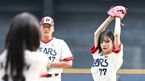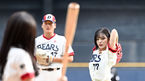 [OSEN=잠실, 조은정 기자] 6일 오후 서울 잠실야구장에서 ‘2023 신한은행 SOL KBO리그’ 두산 베어스와 KT 위즈의 경기가 경기가 열렸다.프로미스나인 박지원, 이채영이 시타, 시구에 나서고 있다. 2023.08.06 /cej@osen.co.kr